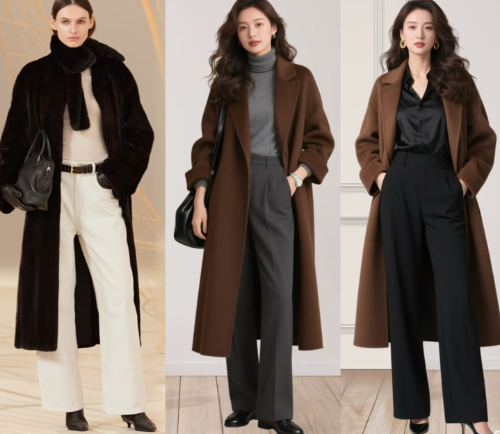 高领毛衣或打底衫,几乎每个女性衣橱里面都有,直筒裤也一样,是平时经常穿的服装。想要大衣穿出高级感,可以选择内搭和裤子同色系,让内搭上下呈现出竖向拉长的线条,造型不仅高级还显身高。
